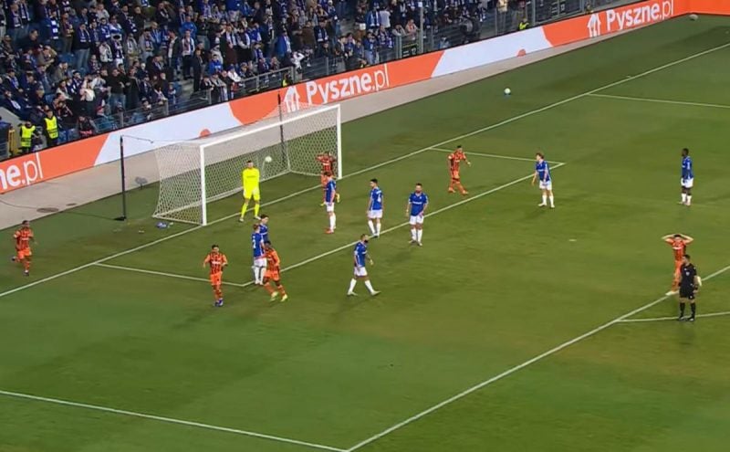 Після цього польський клуб ще активніше пішов уперед, чим, здавалося, могли скористатися "гірники". І в них дійсно було кілька небезпечних моментів на контратаках. Однак усе ж це принесло результат лише їхнім суперникам. Після першого удару у ствір польський клуб провів ще одну атаку. Ішак замкнув передачу у штрафному, зменшивши відрив донеччан до одного голу.